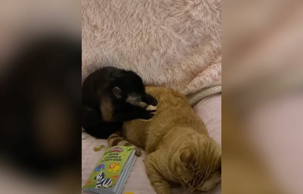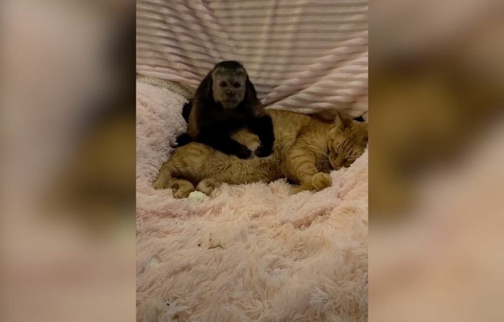 In a cozy home in the United States, a special friendship has grown between two very different animals: Izzy, a playful capuchin monkey, and Zhoto, a gentle three-year-old cat.