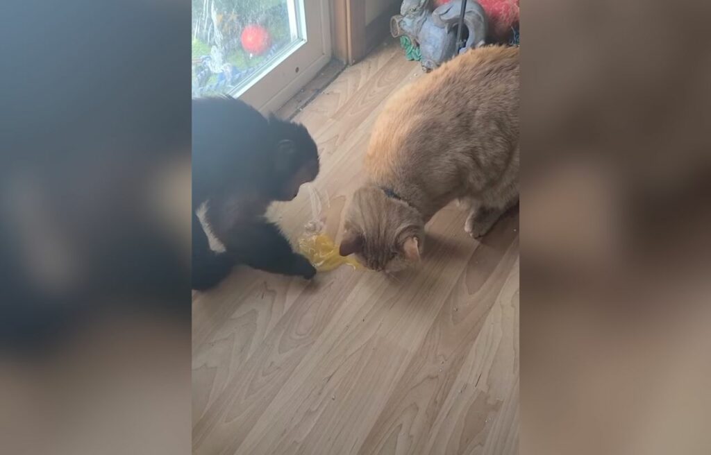 At first, Zhoto was curious about Izzy, following her around and brushing himself against Izzy to get her attention.