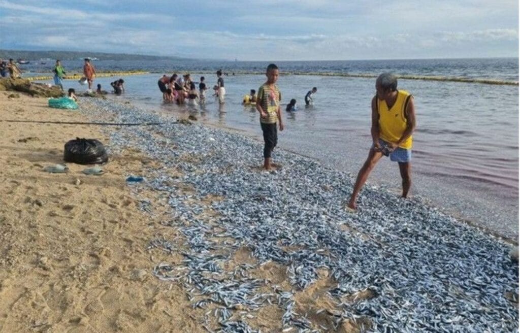 A surprising event happened in Maasim, a beachside town in the Philippines. Thousands of sardines called ‘lopoy’ washed up onto the shore, covering the sand with a shiny layer of silver.