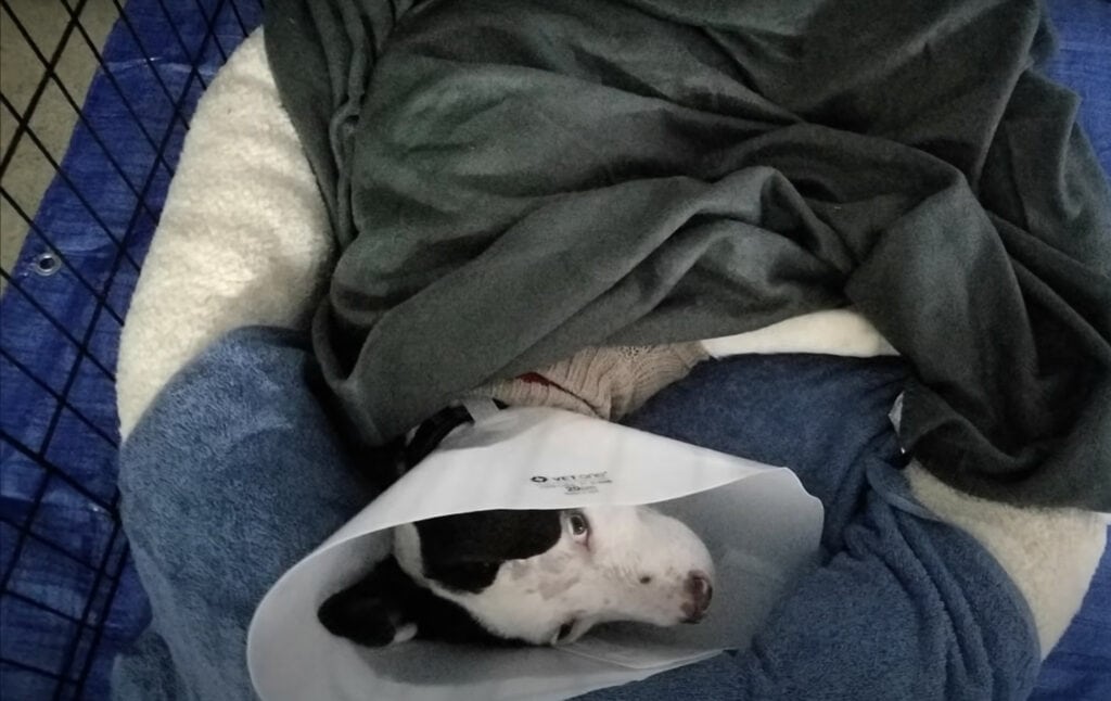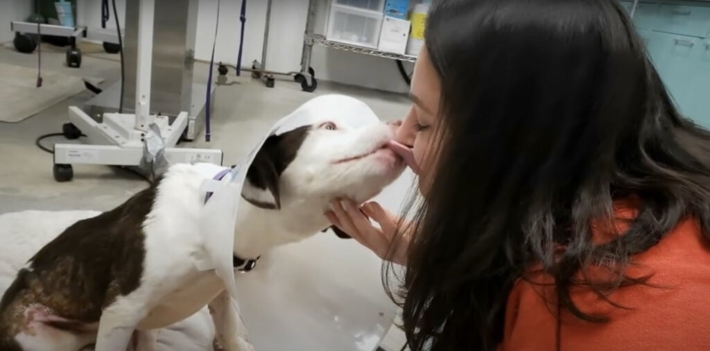 She still craved human contact and kept looking for love and cuddles from anyone around, offering puppy kisses in return.