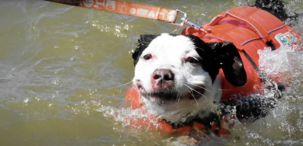 With patience and encouragement, Dory, wearing her life jacket, began to swim, gradually overcoming her fear.
