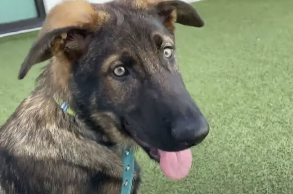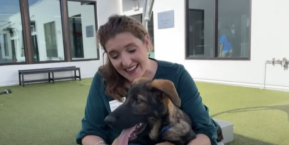This happened to Carlile, a five-month-old German Shepherd, who was left in a car wash dumpster in Tampa.