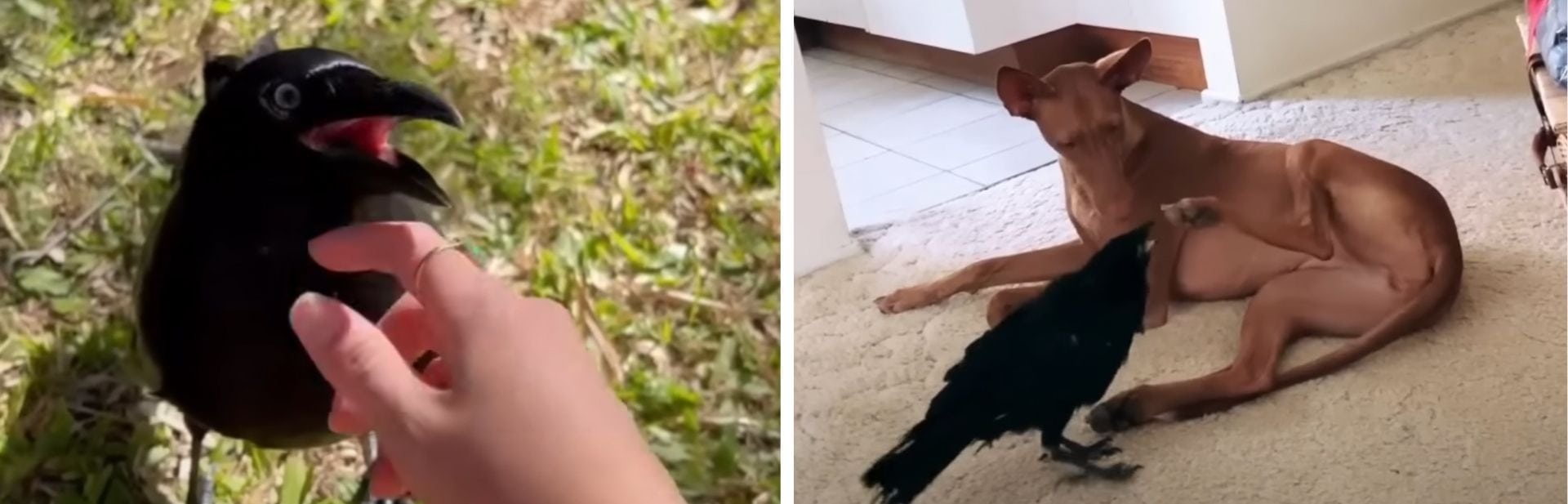 Rescued Raven Acts Like Family’s Dog After Being Abandoned