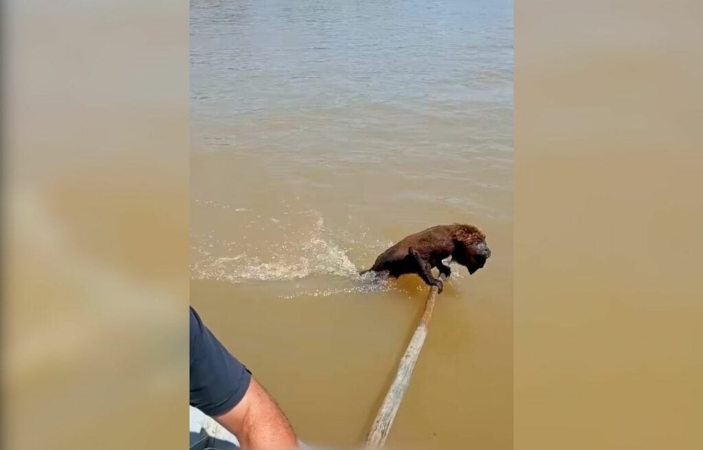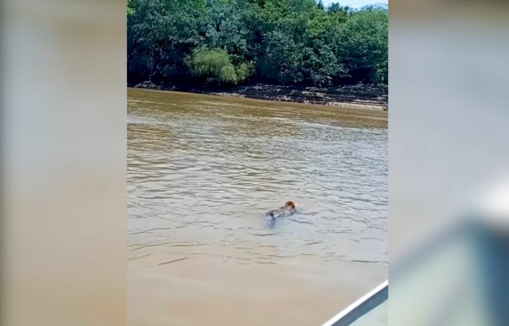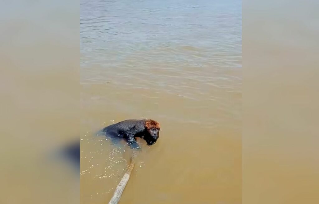 Concern immediately spread among the fishermen when they saw a howler monkey, locally known as a “bugio,” struggling to swim.