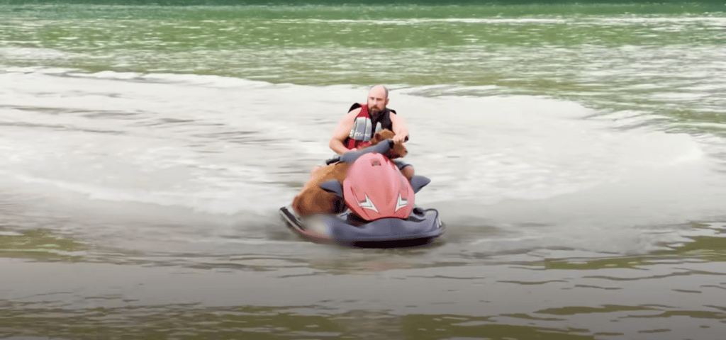 “Ollie acted like it was nothing, that he was supposed to be there. When it was time to get him off, he just stood up there. He wasn’t in a hurry to get off,” Teddy said, describing their jet ski experience.