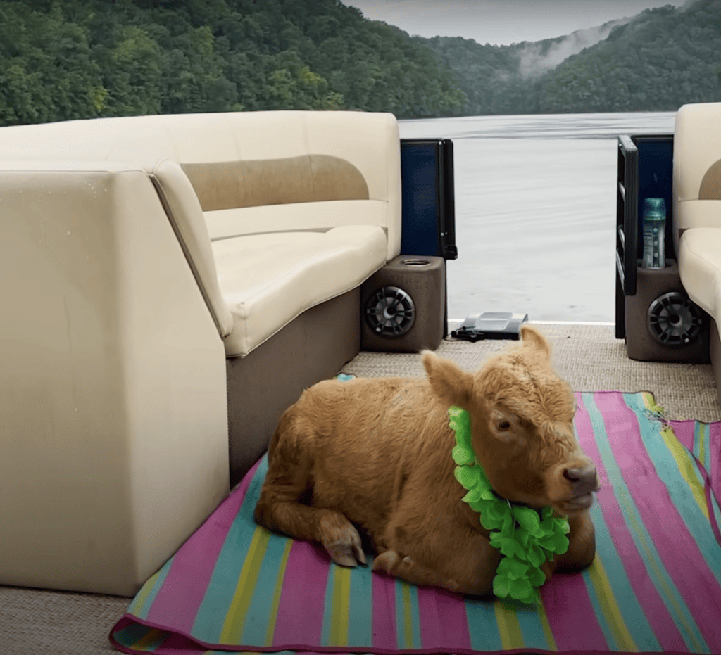 The Dale family often goes to the lake for fun, but the star of their outings is Ollie, a mini cow who loves water and jet skis.