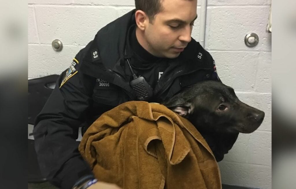 An NYPD officer, Michael Pascale, turned a routine patrol into a mission of mercy when he found a pit bull in dire need of help.