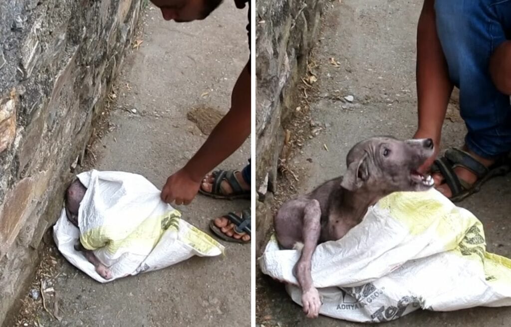 In the busy streets of a town, the sad cries from a plastic bag tell a moving story of survival and hope.