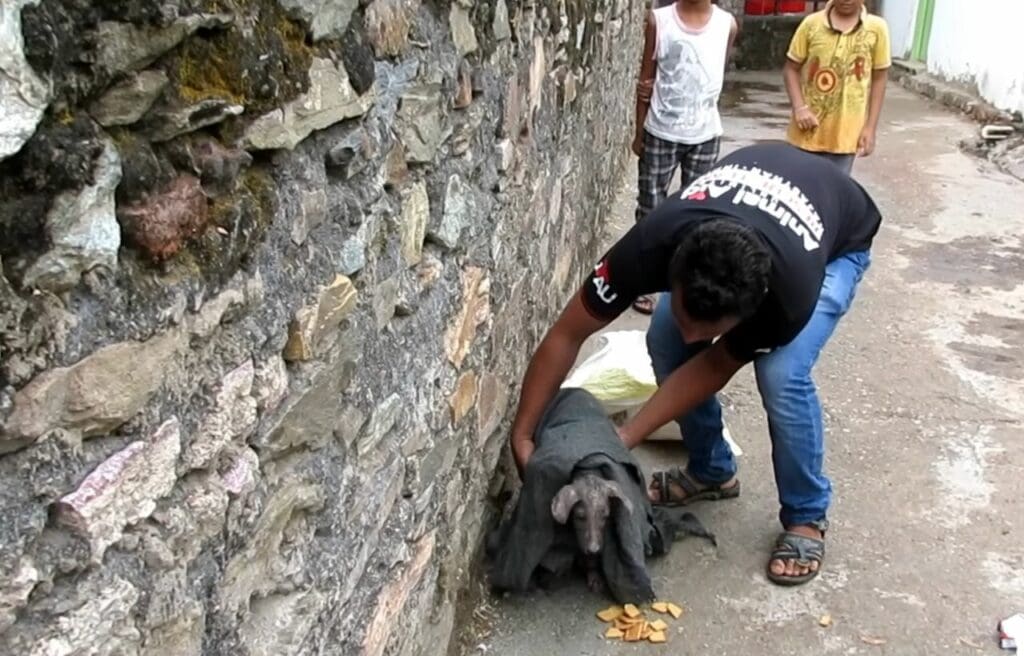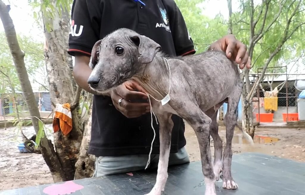 He was very thin, his skin showing through his missing fur, and he struggled to stand on an injured leg.