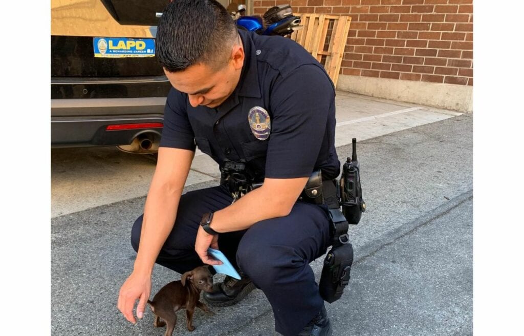 On a regular patrol on October 5, 2019, Officers Alejandro Mercado and Tavera of the LAPD spotted a small, chocolate-colored puppy who seemed to be following them.