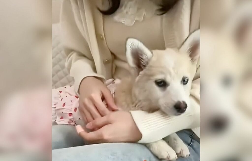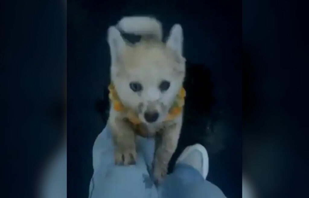 The puppy even nudged Zhang’s leg with its paw and made small noises, like it wanted her to see something important.