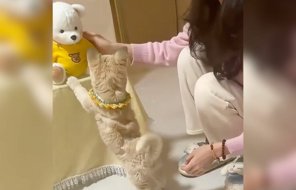 She filmed the moment, not fully understanding just how much the puppy cared for the teddy bear.
