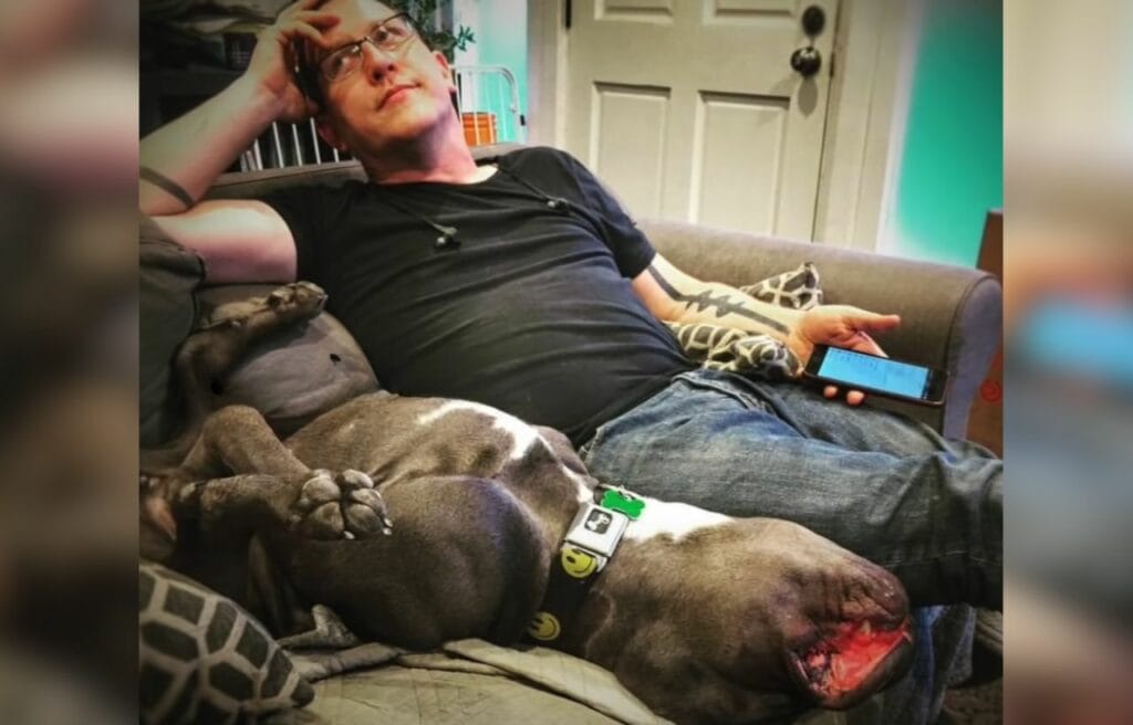 Sherman is a Pit Bull who didn’t have the easiest start. He landed in a dog rescue event, looking for a home despite his big, smelly, and offbeat appearance.