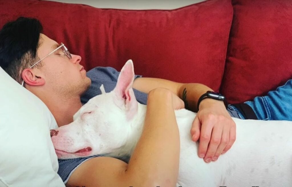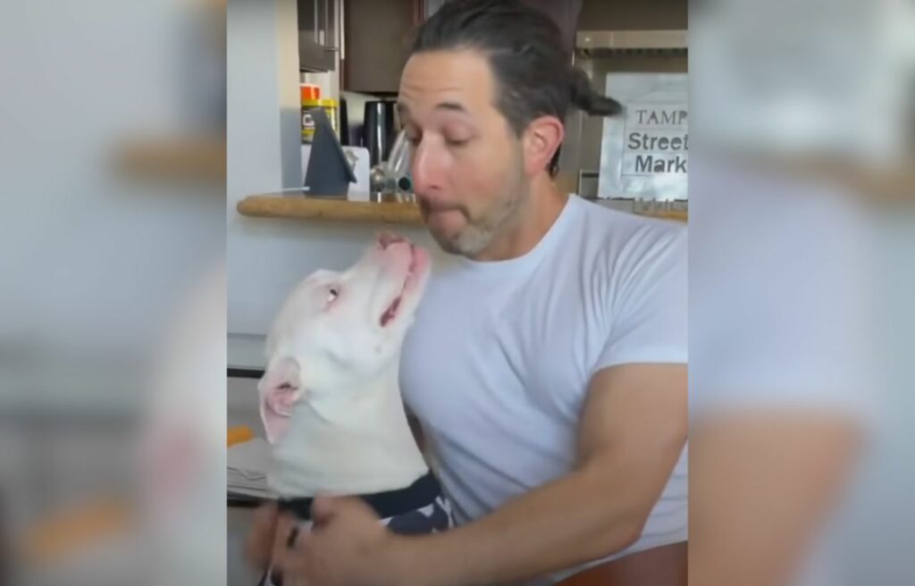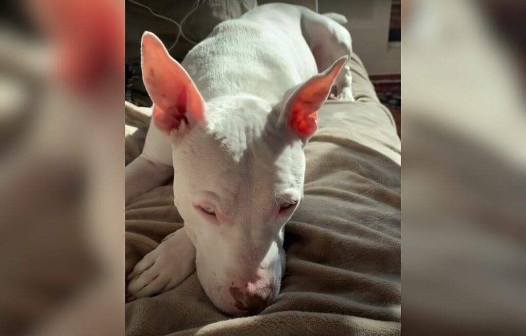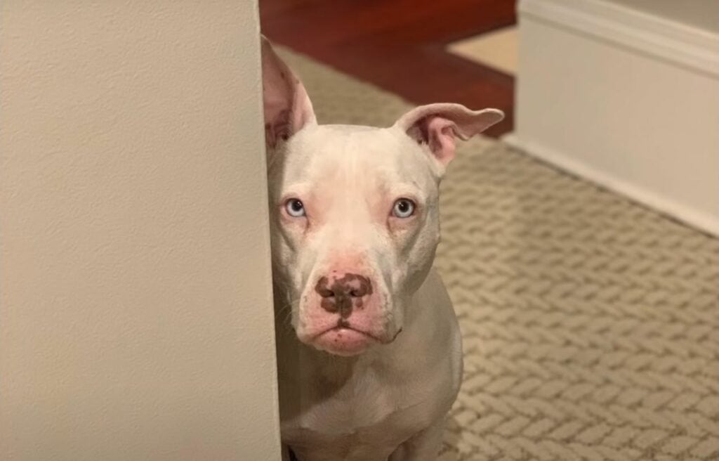 In San Francisco, California, there’s a special dog named Blu, a deaf pit bull with eyes as blue as the sky.