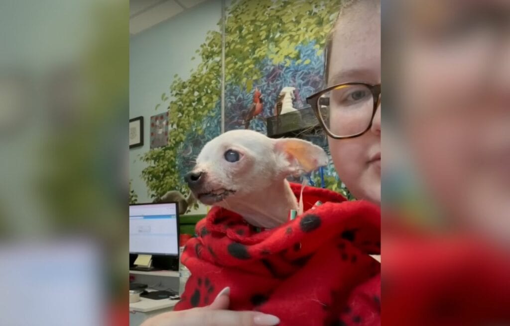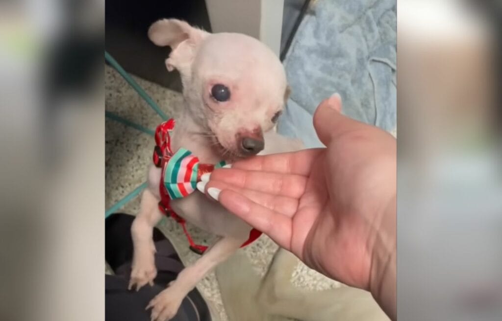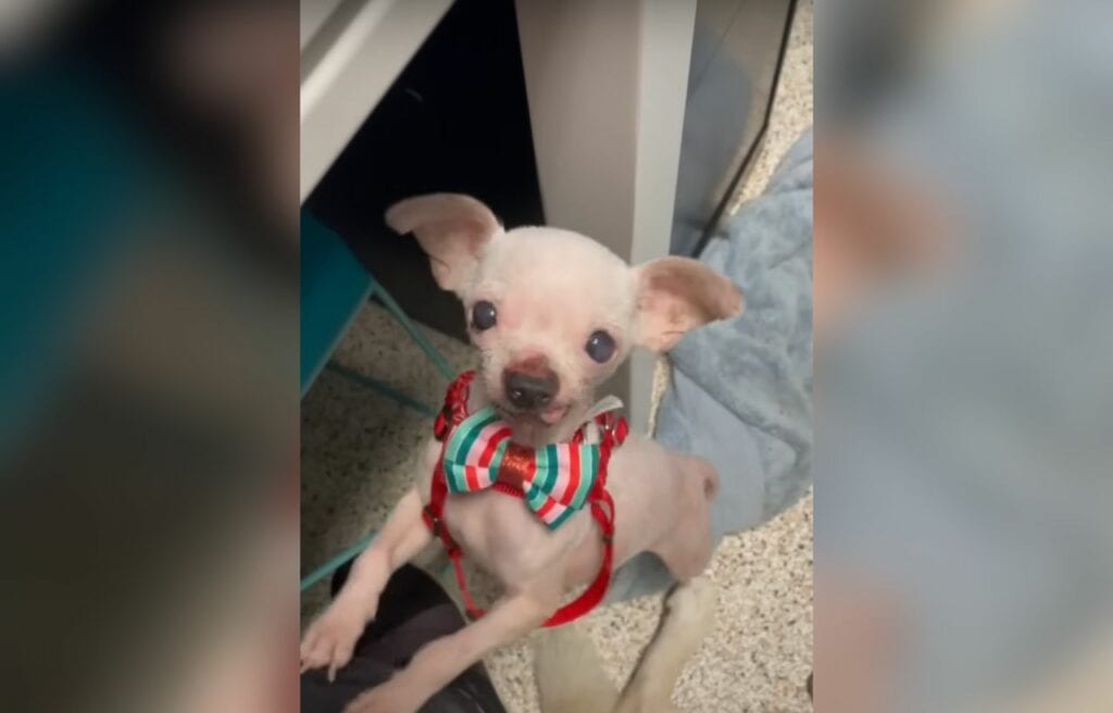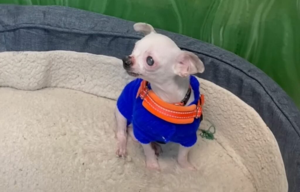 Toothless, a ten-year-old Chihuahua, had been living in a rundown trailer with lots of other dogs when the Houston Humane Society found him.