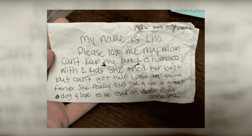 Lilo wasn’t just a stray; she was a well-cared-for dog with a note that exposed her family’s plight.