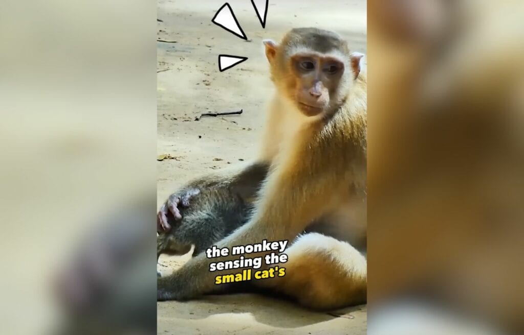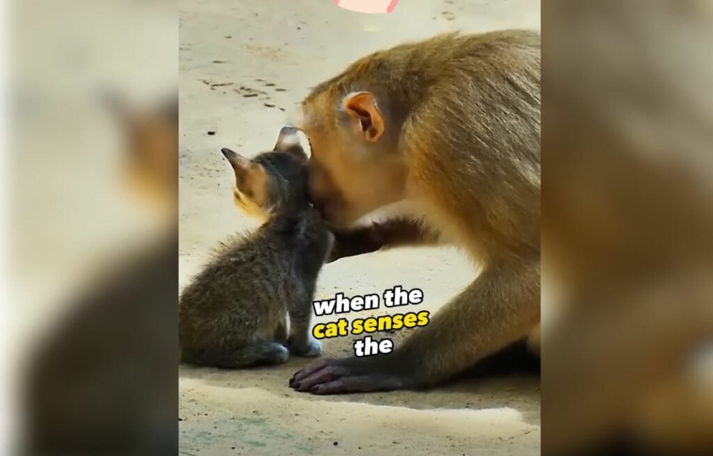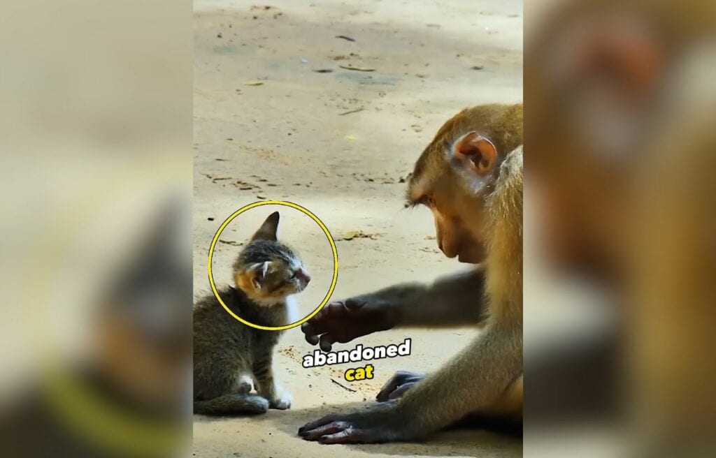 A gentle monkey surprised everyone when she was filmed looking after a tiny kitten that had been left alone. Their unexpected friendship is warming hearts everywhere.