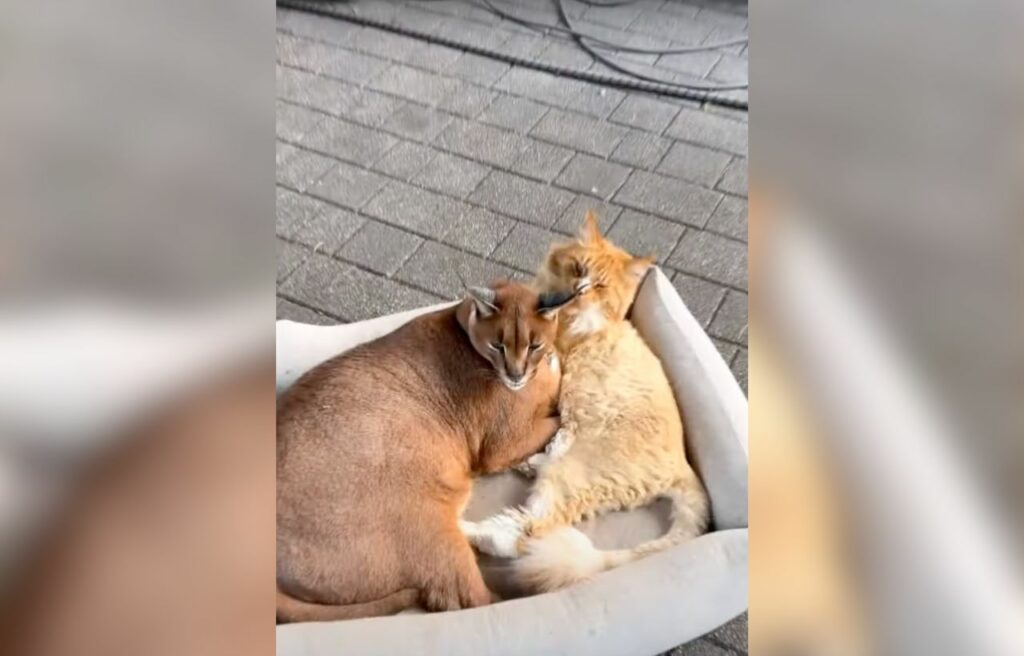He’s formed a special bond with his housecat brother Izjuma, spending their days playing and relaxing together, which is rare for a caracal.
