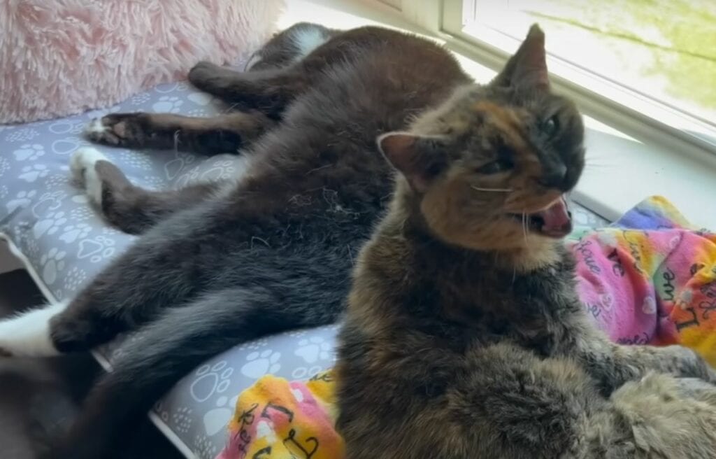 Polly’s story is not just about her. When Sarah brought Elliot, another older cat, into the family, Polly and Elliot became close friends.