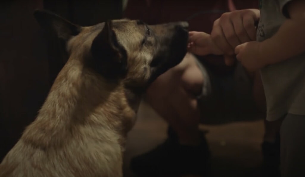 The dog, once seen as fierce, is now a gentle friend and playmate for the boy.